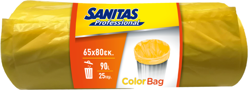 Σακούλες απορριμμάτων κίτρινες 65Χ80εκ ρολό 25τεμαχίων Sanitas Professional