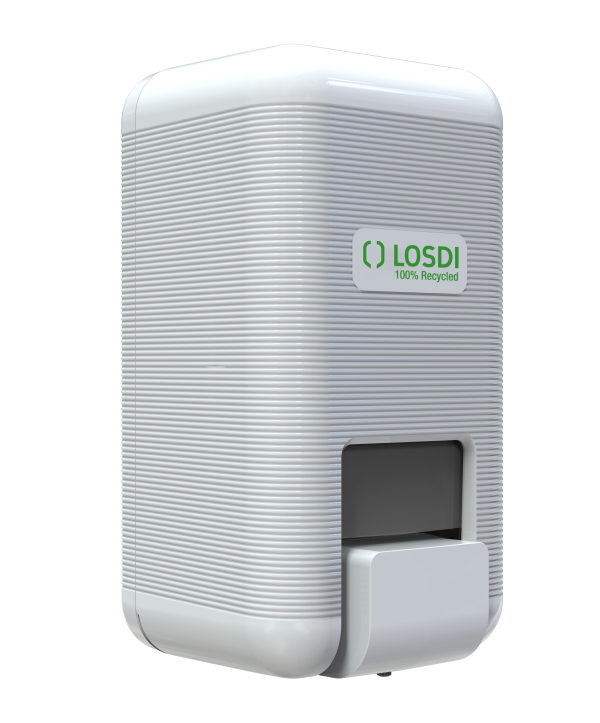 Ο διανομέας σαπουνιού ECO-LUXE είναι ιδανικός για χρήση με υδροαλκοολικό gel καθώς διαθέτει βαλβίδα κατά της σταξίματος, η οποία επιτρέπει τη δοσολογία υγρών προϊόντων όπως απολυμαντικό. Σχεδιασμός, ποιότητα και λειτουργικότητα. Αυτά είναι τα τρία κύρια χαρακτηριστικά του dispenser από τη νέα σειρά ECO-LUXE. Αυτός ο διανομέας σαπουνιού μπορεί να χωρέσει έως και 1 λίτρο υγρού σαπουνιού στο ξαναγεμιζόμενο μπουκάλι του, επιτρέποντας εκτεταμένη χρήση. Εξοπλισμένος με βαλβίδα κατά της σταξίματος για την αποφυγή σπατάλης αναλώσιμων, επιτρέπει τη δοσολογία 1 ml σαπουνιού ανά πάτημα. Το εξωτερικό του σώμα είναι κατασκευασμένο εξ ολοκλήρου από 100% ανακυκλωμένο λευκό πλαστικό και δίνει στο dispenser ένα μοναδικό και εντυπωσιακό σχεδιασμό. Περιλαμβάνει κλειδαριά και κλειδί για να διευκολύνει την αντικατάσταση αναλώσιμων και να προστατεύει το εσωτερικό της συσκευής από κακή χρήση. Η νέα σειρά ECO-LUXE γεννήθηκε από την επιθυμία να συμβάλει στη βελτίωση της υγιεινής σε δημόσιους χώρους παρέχοντας εντυπωσιακό σχεδιασμό, ποιότητα, λειτουργικότητα και βιωσιμότητα σε ανταγωνιστικές τιμές.